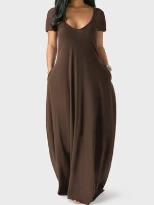 Leopard Print Colorblock Long Summer Tee Dress With Seelves