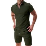 Summer Fashion Mens Clothing Men's Suits New Zipper Polo Casual Short Sleeve Drawstring Shorts Men's Set