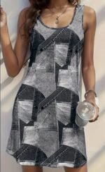 Elegant Women's Round Neck Button-Up Dress - Sleeveless, Solid Color, Short Length, Elegant Special Project Style, Conventional Version, Xia