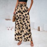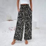 Elastic Waistband Lace-up Wide Leg Pants Solid Color Cropped Pants