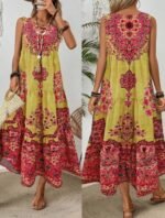 Be the first to review “Holidaya Ladies Summer Floral Print Round Neck Sleeveless Dress For Casual Or Vacation”