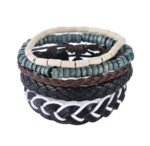 Material: woven leather rope + wax rope + wooden beads + hemp rope