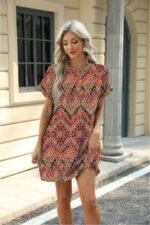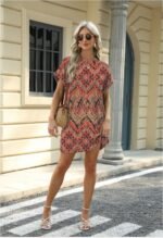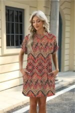 Be the first to review “Loose Crew Neck Short Sleeve Printed Pocket Dress”