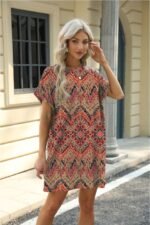Loose Crew Neck Short Sleeve Printed Pocket Dress