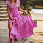 Be the first to review “New V-neck Fringed Bohemian Print Long Skirt Summer Sleeveless Loose Casual Beach Dress”