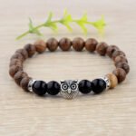 Owl frosted stone lifeline wood grain bracelet