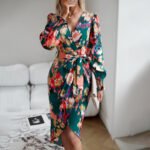 Women's Long Sleeve Dress Ruffle Flared Sleeve Bowknot Waffle Temperament Short Dresses