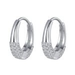 Sterling Silver S925 French Oval Minimal Design Diamond Set Zircon Earrings