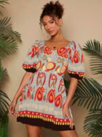 Elegant Floral Print Long Sleeved Abaya Robe Dress