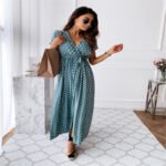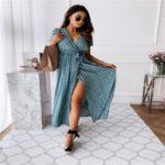 Be the first to review “V-neck Bohemian Polka Dot Print Dress Long Skirt”